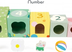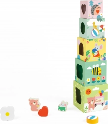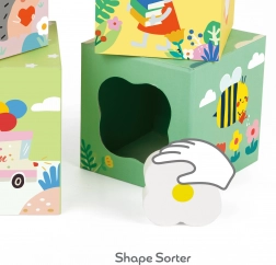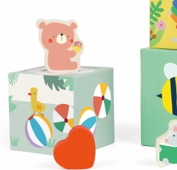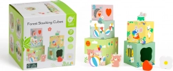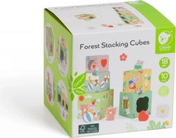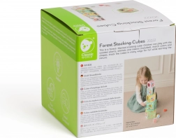 Această set de cuburi cu tematică forestieră prezintă elemente diverse precum plante, animale și insecte, pe care copiii le descoperă pe diferite fețe ale cuburilor. Cuburile pot fi aranjate pentru a construi un turn înalt sau folosite pentru sortarea formelor, dezvoltând astfel motricitatea și gândirea logică a copiilor.