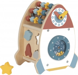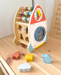 Rachetă de lemn este o jucărie multifuncțională care oferă șase activități diferite pentru dezvoltarea abilităților copiilor:
