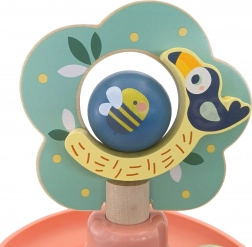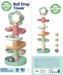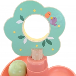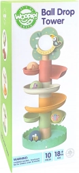Pista de bile din lemn WOOPIE GREEN, în nuanțe naturale și pastelate, aduce copiilor îndrăgitul joc cauză–efect: pune bila sus și urmărește cum se rotește pe niveluri până la bază. Construcția stabilă, marginile netede și bilele cu imprimeuri de animăluțe asigură o joacă sigură și captivantă.