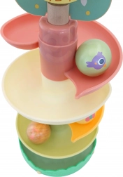Copiii urmăresc mișcarea lină a bilelor pe spirale, exersând coordonarea mână–ochi și prinderea precisă a bilelor.
