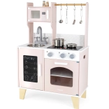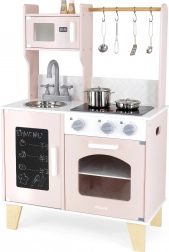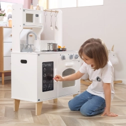 Copiii pot „găti” pe plite, „coace” în cuptor și „spăla” vasele în chiuvetă – totul cu elemente realiste și uși care se deschid, pentru o joacă autentică de-a bucătarul.