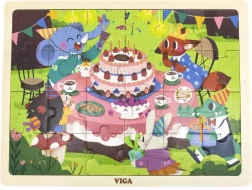 Descoperă puzzle-ul din lemn VIGA, de calitate, cu tematica petrecerii de ziua de naștere. Puzzle-ul cu 24 de piese este așezat pe o placă din lemn cu model de referință, iar fiecare piesă este numerotată de la 1 la 24, facilitând asamblarea pentru copii și sprijinind învățarea numerelor. Potrivit de la 24 de luni, vopsit cu culori netoxice.