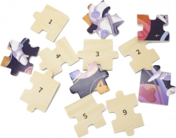 Puzzle-urile din lemn VIGA Aventură cosmică atrag prin culorile vii și piesele clar numerotate, care îi ajută pe cei mici să asambleze pas cu pas fără frustrare inutilă. Suportul solid din lemn servește drept ramă și șablon vizual – copilul vede ușor unde se potrivește fiecare piesă.