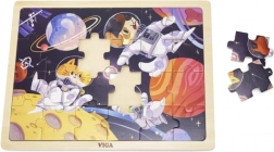 Descoperă puzzle-urile din lemn VIGA cu tematică spațială, planete și adorabili animăluțe astronauți. Setul include 24 de piese într-o suport din lemn cu model tipărit și piese numerotate 1–24 pentru asamblare mai ușoară. Ideal pentru copii de la 24 de luni, dezvoltă motricitatea fină, atenția și coordonarea mână–ochi.