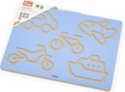 Descoperiți un mod distractiv de a ajunge la primele trasee și litere. Tabla din lemn VIGA cu motive de vehicule îi conduce pe copii către mișcări fluide ale mâinii, presiune corectă și direcție potrivită a trasării. Antrenamentul se desfășoară natural, prin joc – urmărirea repetată a șanțurilor stimulează concentrarea și siguranța în mână.