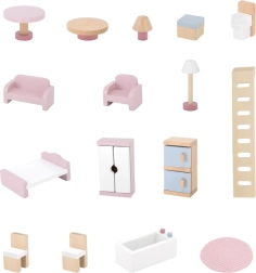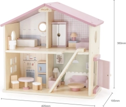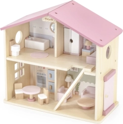 Căsuța elegantă din lemn pentru păpuși de la Viga PolarB îi va încânta pe copii de la 3 ani. Oferă 2 etaje separate printr-o scară, este complet mobilată și realizată din lemn de calitate, în culori pastelate delicate. Ideală pentru păpuși de până la 10 cm și pentru dezvoltarea imaginației și a abilităților sociale.