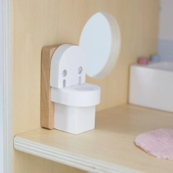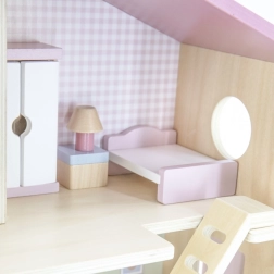 Căsuța din lemn pentru păpuși Viga PolarB le oferă copiilor un mediu încântător pentru joc creativ. Două niveluri cu scară includ bucătărie, living, baie și un dormitor primitor – fiecare cameră este atent proiectată și dotată cu accesorii detaliate. Datorită construcției robuste din lemn de calitate și culorilor pastelate atemporale, căsuța este durabilă, sigură și se potrivește perfect în camera copilului.