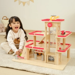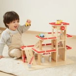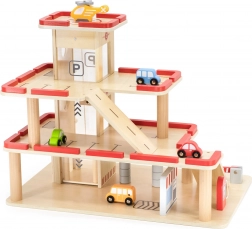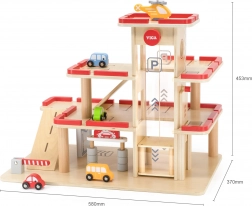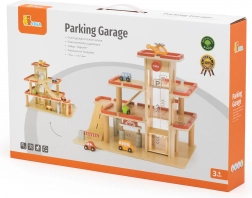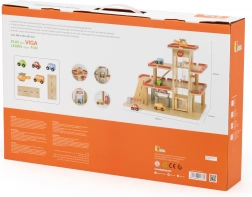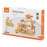Descoperă garajul de parcare din lemn VIGA pentru copii de la 3 ani – set robust pe trei niveluri, cu lift manual, spălătorie auto și heliport. Include 4 mașinuțe și un elicopter, detalii realiste și construcție durabilă din lemn pentru joc creativ și dezvoltarea motricității fine.