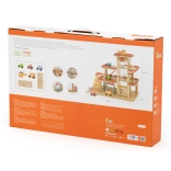 Garajul din lemn VIGA este ideal pentru micii pasionați de mașini și avioane. Trei etaje cu rampe, lift manual și platformă de aterizare pentru elicopter oferă ore întregi de joc imaginativ. Datorită construcției stabile și finisajului atent, setul este potrivit pentru joacă individuală sau în grup.