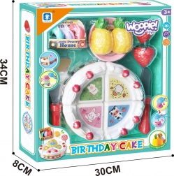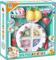 Drăguțul set aniversar de la Woopie transformă orice ceai al copiilor într-o petrecere de neuitat. Frumos decoratul tort din plastic pentru tăiat se împarte ușor în porții, iar datorită accesoriilor precum cuțitaș, spatulă și farfurioară, copiii pot exersa servirea ca adevărați gazde.