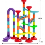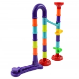 Setul creativ pentru pista cu bile WOOPIE este jucăria ideală pentru copiii curioși. Datorită culorilor vii și formelor variate de tuburi, pâlnii și curbe, cei mici își pot asambla cu ușurință trasee originale și pot urmări cum bilele se succed cu viteză.
