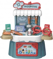 Descoperiți versatilul set pentru copii WOOPIE 3în1 – poate fi purtat ca valiză, geantă sau desfăcut ca mini cabinet. Copiii vor adora instrumentele realiste precum stetoscopul, termometrul sau tensiometrul și se vor juca cu plăcere de-a medicul și pacientul. Acest joc ajută la înțelegerea lumii adulților și contribuie la reducerea fricii de medic.