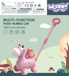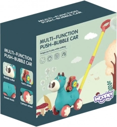 Antemergătorul văcuță de la WOOPIE este un ajutor ideal pentru învățarea mersului. Copiii își pot conduce înainte văcuța preferată, care în timpul deplasării eliberează bule direct din guriță. Este suficient să înșurubați recipientul cu soluție (în pachet sunt 2 recipiente) și distracția poate începe. Atmosfera este completată de melodii plăcute, care pot fi pornite sau oprite printr-un buton.