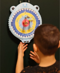 Ținta magnetică în formă de rechin atrage atenția fiecărui copil și îl încurajează la joc.