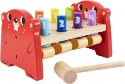 Setul include o bancă din lemn cu 8 ținte colorate și un ciocan din lemn. Jucăria este fabricată din materiale sigure și durabile, asigurând siguranță maximă și durabilitate.