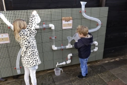 Copiii pot experimenta liber cu aranjarea țevilor și extinde sistemele cu elemente noi.