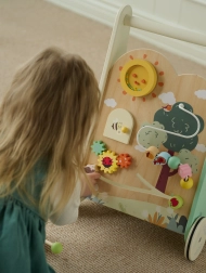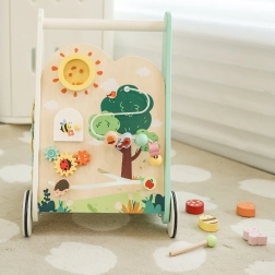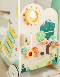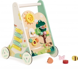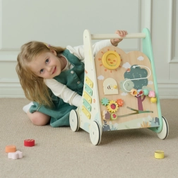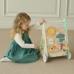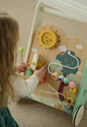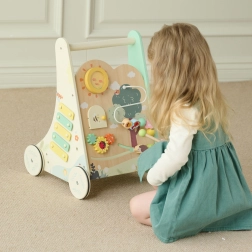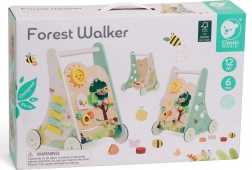 Premergătorul din lemn CLASSIC WORLD Forest Walker susține primii pași și explorarea zilnică. Construcția robustă din lemn oferă siguranță și stabilitate, iar benzile de cauciuc ale roților asigură o mișcare lină și silențioasă pe podea. Elementele interactive colorate – xilofon, rotițe dințate, mărgele glisante și labirinturi – motivează natural copilul la joacă și învățare.