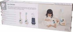 Ukulele-ul este realizat din materiale durabile și decorat cu vopsele netoxice. Este excelent pentru joacă liberă, educație muzicală și momente petrecute în familie – atât acasă, cât și în aer liber. O modalitate distractivă de a trezi creativitatea și simțul muzicii în copii.