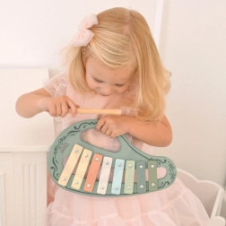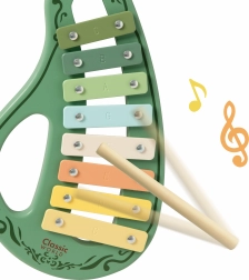Instrumentele sunt realizate din lemn lăcuit și vopsite cu culori netoxice. Formele ergonomice se potrivesc ușor în mâinile mici și susțin motricitatea fină, simțul ritmului și expresivitatea muzicală. Ideal pentru distracție în familie și pentru primele lecții de muzică acasă.