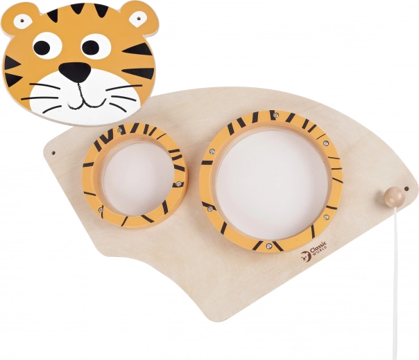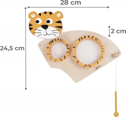 Descoperiți lumea creativă a sunetelor cu tabla de perete TIGRIȘOR, care va deveni centrul captivant al oricărei săli de joacă sau clase. Interacțiunea cu diferitele elemente sonore dezvoltă în mod natural motricitatea, ritmul și abilitățile auditive ale copiilor. Datorită execuției din lemn și materialelor sigure, este o alegere ideală pentru utilizare zilnică.