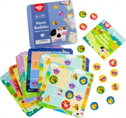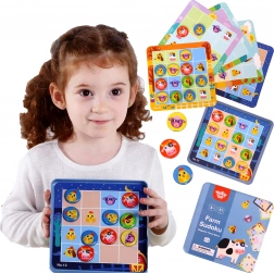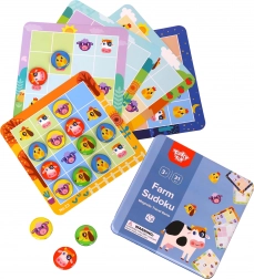 Descoperă un joc distractiv și educativ pentru copii – sudoku magnetic cu tematică de fermă de la TOOKY TOY. Jetoane colorate cu animale, reguli simple inspirate de sudoku și până la 30 de provocări diferite care susțin gândirea logică, concentrarea și recunoașterea animalelor. Datorită cutiei metalice de călătorie, jocul este ideal și pentru drumuri.