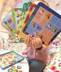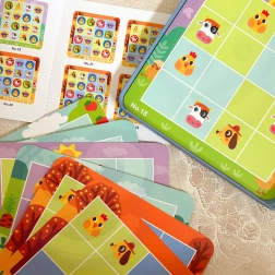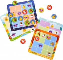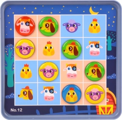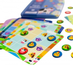 Jocul magnetic sudoku Ferma oferă copiilor de la 3 ani provocări captivante bazate pe principiile sudoku clasic – în fiecare rând și coloană se plasează animale diferite astfel încât să nu se repete. Magneții puternici mențin jetoanele pe poziție, astfel încât jocul este confortabil atât acasă, cât și în călătorii.