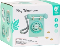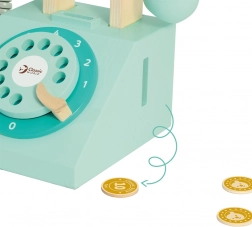 Acest telefon din lemn în stil clasic oferă copiilor o experiență autentică de joacă. Datorită discului rotativ, receptorului cu șnur și jocului cu introducerea monedelor, copiii învață să poarte o conversație, își dezvoltă abilitățile sociale și exersează coordonarea mână–ochi. Fără baterii – se aude un plăcut clopoțel mecanic.