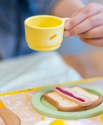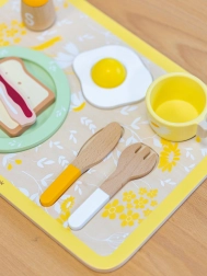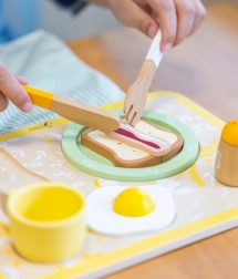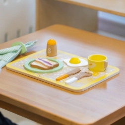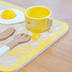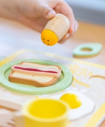 Lăsați-i pe cei mici să se cufunde într-o distracție caldă și creativă cu setul de mic dejun din lemn de la Classic World. Acest set nu doar că oferă numeroase posibilități de joc, ci îi ajută pe copii să își dezvolte abilitățile sociale și bunele obiceiuri la masă. Ideal pentru copii de la 3 ani, setul include farfurie, tacâmuri, cană, sare, piper, ou, felii de pâine prăjită, o felie de bacon, șervețel și tavă de servire.
