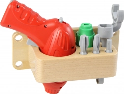 Conține șurubelniță cu 4 capete interschimbabile, cheie și bormașină, ideal pentru micii mecanici.