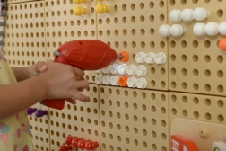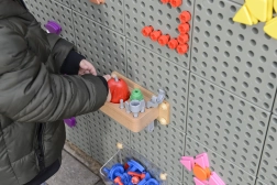 Copiii pot înșuruba, monta și crea diverse modele și imagini pe panoul STEM.