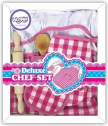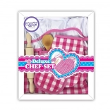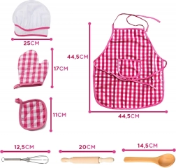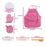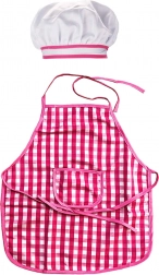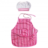 Șorțul și pălăria cu model gingham roz alb sunt elementele principale care asigură o experiență de joc stilată și funcțională pentru copii.