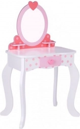 Masă de toaletă pentru copii de la marca Tooky Toy este un accesoriu perfect pentru orice camera de copil. Fabricat din lemn de calitate și decorat cu detalii albe și roz, acest set îndeplinește visul fiecărei mici prințese.
