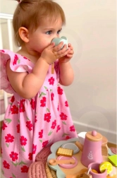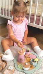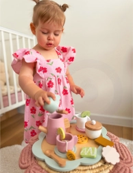 Setul de ceai este ideal pentru copiii care adoră să se joace de-a ceaiul de după-amiază. Setul este fabricat din lemn de calitate și este compus din componente multicolore care atrag la joacă.