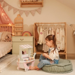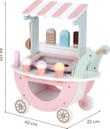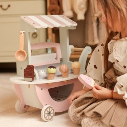 Căruciorul din lemn pentru înghețată Woopie Green nu este doar o piesă frumoasă în culori pastelate, dar și plin de posibilități de joc creativ. Copilul dvs. poate deveni vânzător, client sau chiar „maestrul înghețatei” și să creeze cupe de înghețată proprii după fantezie!