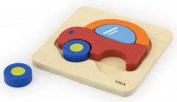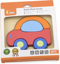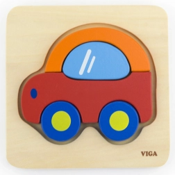 Puzzle din lemn în formă de mașină, marca VIGA, oferă durabilitate și atractivitate coloristică.