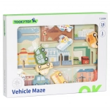 Acest labirint din lemn de calitate, cu tematică urbană și mijloace de transport, este alegerea ideală pentru copiii de la 18 luni. Placa robustă, muchiile netede și culorile intense, sigure și netoxice, garantează distracție sigură și de durată. Copiii deplasează piesele pe traseele frezate și învață unde se potrivesc mașina de poliție, ambulanța, autobuzul școlar, mașina de pompieri, barca sau avionul.