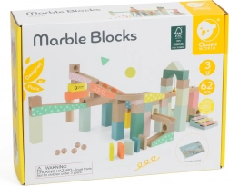 Setul din lemn pentru construirea unei piste cu bile de la Classic World este potrivit pentru copiii de la 3 ani. Această jucărie conține 62 de bucăți cu forme și dimensiuni diferite, oferind posibilități infinite de construire a pistelor creative. Culorile pastelate și vopselele netoxice asigură siguranța și un aspect estetic al jucăriei.