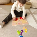 Jucăria este realizată din lemn rezistent cu margini netede, potrivită pentru preșcolari de la 3 ani. Susține motricitatea fină, coordonarea mână–ochi, concentrarea și creativitatea. Datorită culorilor intense și marcajelor clare, menține atenția și transformă învățarea într-un joc distractiv.