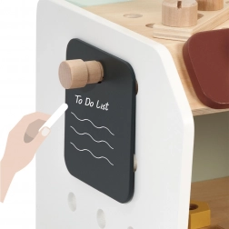 Prelucrarea de calitate din lemn solid cu margini netede asigură joaca în siguranță. Pe laterale se află orificii pentru înșurubarea pieselor, extinzând posibilitățile de construcție și jocul imaginativ. Datorită dimensiunii sale, mini bancul este ideal atât pentru camera copilului, cât și pentru călătorii.