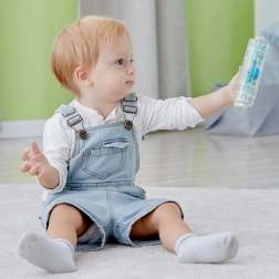 Mânerul ergonomic, rotunjit, se potrivește în mâna copilului, astfel încât este ușor de scuturat, înclinat și rotit. Toba este un accesoriu excelent pentru activități muzicale și ritmice acasă sau la grădiniță și sprijină percepția auditivă, senzitivitatea la sunet și imaginația.