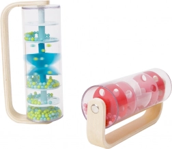 Această tobă a ploii cu biluțe, realizată cu atenție, oferă o experiență vizuală și sonoră – biluțele curg lin pe spirală și creează un plăcut efect „de ploaie”. Datorită lemnului natural și tubului transparent rezistent, jucăria este sigură, solidă și îi invită pe copii să descopere sunete și ritmuri.