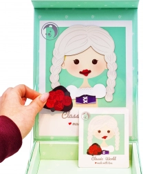 Descoperiți farmecul jocului creativ cu puzzle-ul magnetic cu prințese CLASSIC WORLD. Copiii pot crea diverse look-uri și ținute după modele sau după propria imaginație. Datorită magneților rezistenți, piesele stau bine fixate, astfel încât asamblarea este comodă atât acasă, cât și în călătorii.