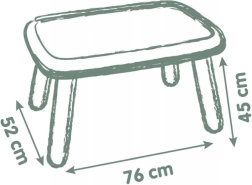 Măsuță robustă și cu design modern pentru copii, ideală pentru utilizare atât în interior, cât și în exterior. Designul său permite șederea confortabilă pentru până la 4 copii. Datorită tratamentului Anti-UV sunt garantate o bună rezistență și durabilitate a culorilor. Acest model este disponibil în culoarea verde și este fabricat din cel puțin 98% material reciclat, ceea ce îl face o opțiune ecologică.