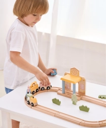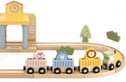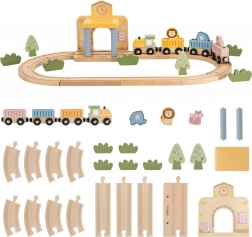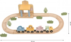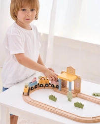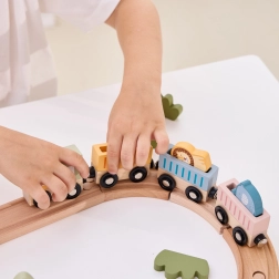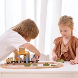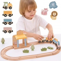 Datorită execuției solide din lemn de calitate, setul este durabil și sigur pentru joaca zilnică. Copiii își dezvoltă motricitatea fină, coordonarea mână–ochi și creativitatea inventând povești cu animalele – elefant, leu și vulpe. Calea ferată este grozavă atât pentru joaca individuală, cât și pentru cea împreună cu alții.