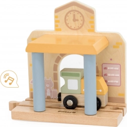 Stația cu funcție sonoră pornește automat la trecerea trenulețului – jocul devine astfel mai viu și mai captivant.