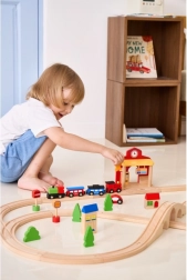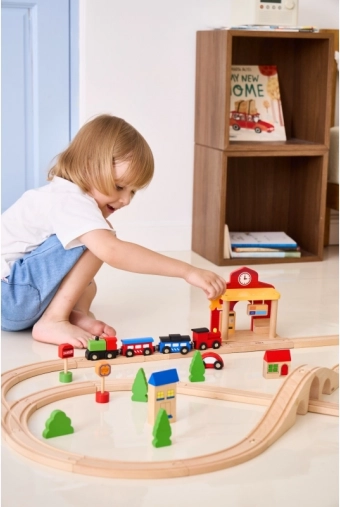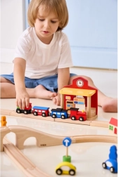 Gara este ideală pentru scenete pentru copii – de la vânzarea biletelor până la sosiri și plecări de trenuri. Dimensiunile construcției sunt concepute pentru a se potrivi ușor pe majoritatea suprafețelor de joacă și pentru a fi compatibile cu șinele din lemn uzuale. Jocul dezvoltă motricitatea fină, coordonarea mână–ochi și abilitățile sociale.