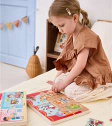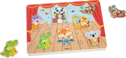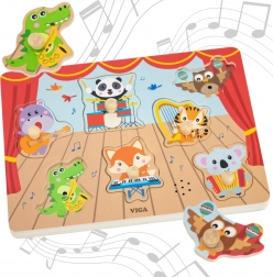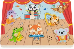 Intrați în lumea muzicii și a învățării cu puzzle-ul din lemn original de la VIGA, unde muzicanții din lumea animalelor vor aprinde imaginația copiilor. După ridicarea și repunerea piesei, copiii vor auzi sunetul realist al instrumentului muzical, ceea ce susține învățarea prin experiență.