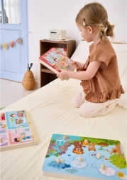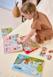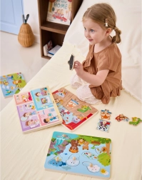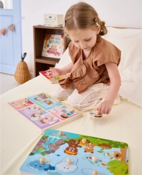 Puzzle-urile colorate reprezintă scene naturale variate și sunete care captează imediat interesul copiilor.