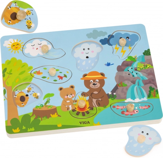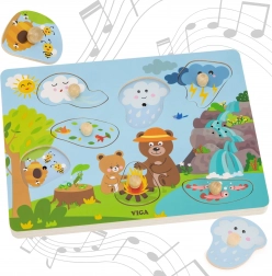 Introduceți copilul în lumea magică a naturii cu puzzle-urile din lemn Sunetele naturii de la VIGA. Jucăria este concepută pentru a sprijini în mod natural dezvoltarea imaginației și curiozității copilului. Este suficient să așezați piesele corecte pe tablă pentru a declanșa sunete realiste ale naturii, oferind micuțului senzația unei adevărate aventuri în pădure. Această jucărie este ideală pentru copiii care doresc să descopere lumea prin joc interactiv.