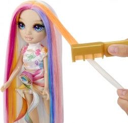 Descoperă lumea creativă a stylingului cu păpușa Rainbow High Amaya. Datorită părului ultra lung, ușor de pieptănat și setului de crete colorate, creezi atât șuvițe pastelate delicate, cât și accente curcubeu îndrăznețe. Culorile se clătesc simplu, iar tu poți experimenta din nou și din nou.